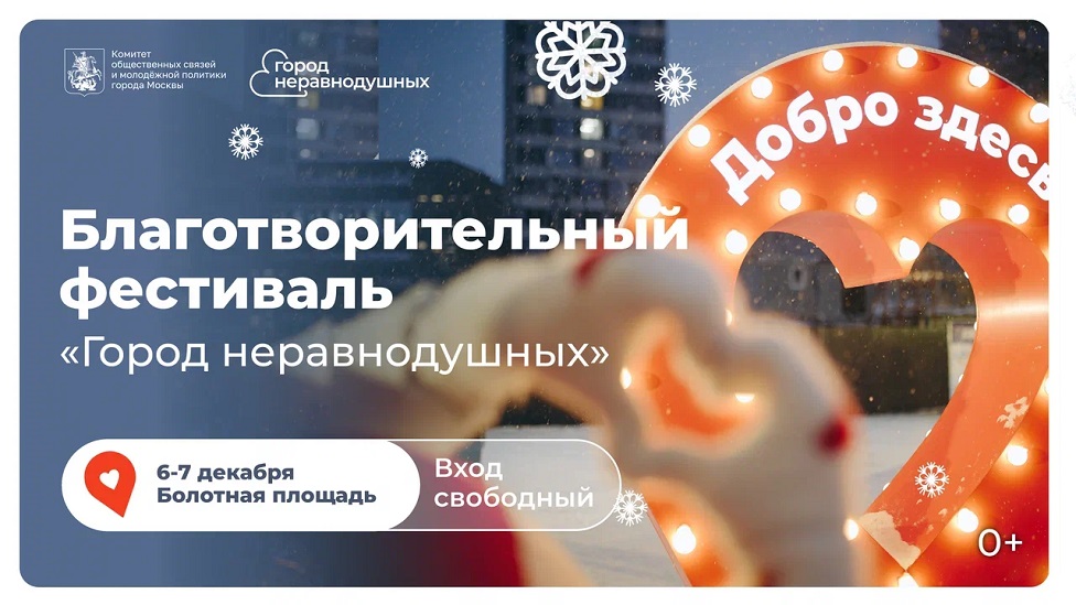 6 и 7 декабря на Болотной площади пройдет благотворительный фестиваль «Город неравнодушных». Он станет местом встречи представителей некоммерческих организаций, волонтёров и горожан, которые хотят провести зимние выходные с пользой.