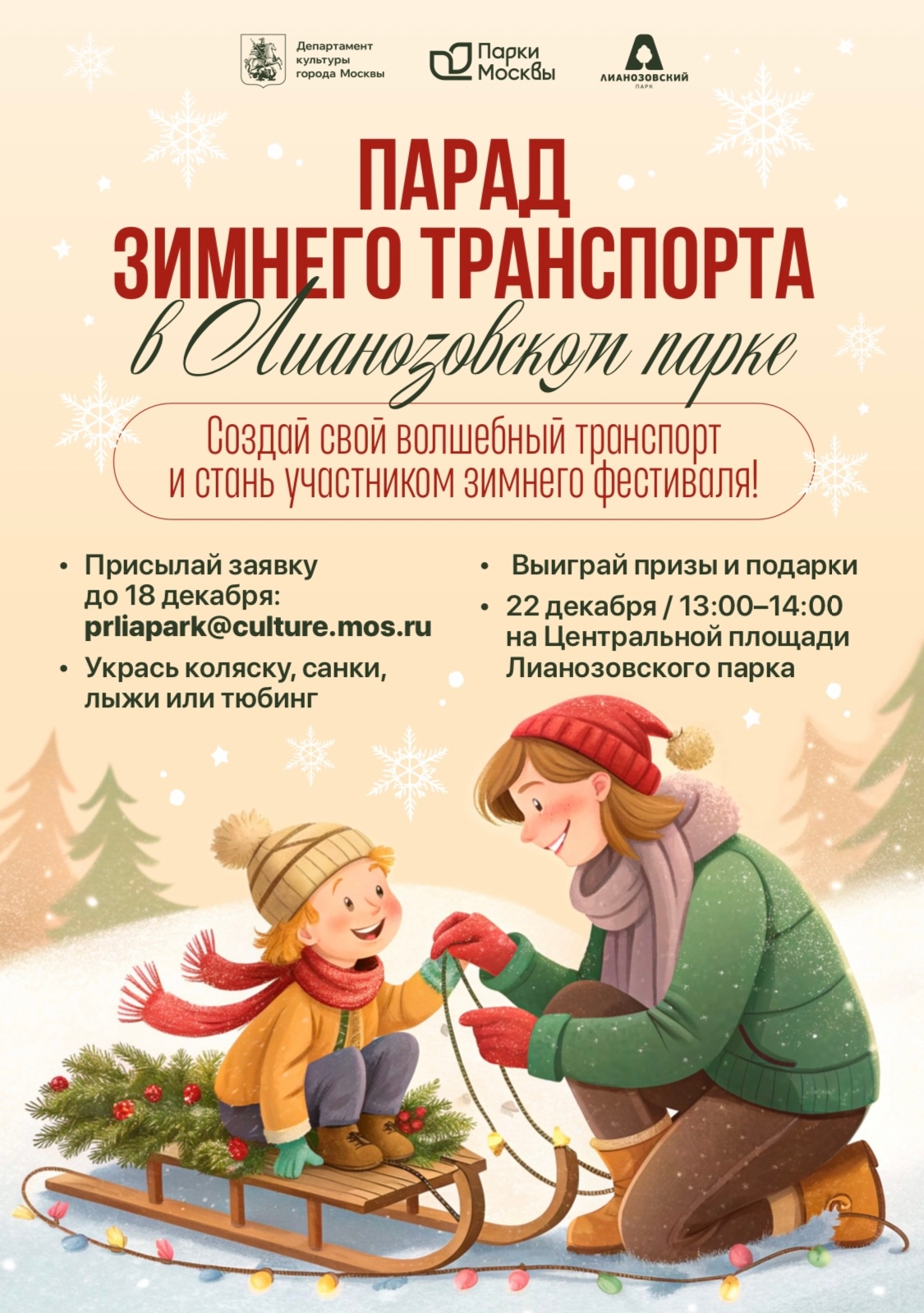 Лианозовский парк с радостью объявляет о проведении второго фестиваля-конкурса «Парад зимнего транспорта» — красочного и яркого события, которое состоится 20 декабря 2025 года на Центральной площади парка