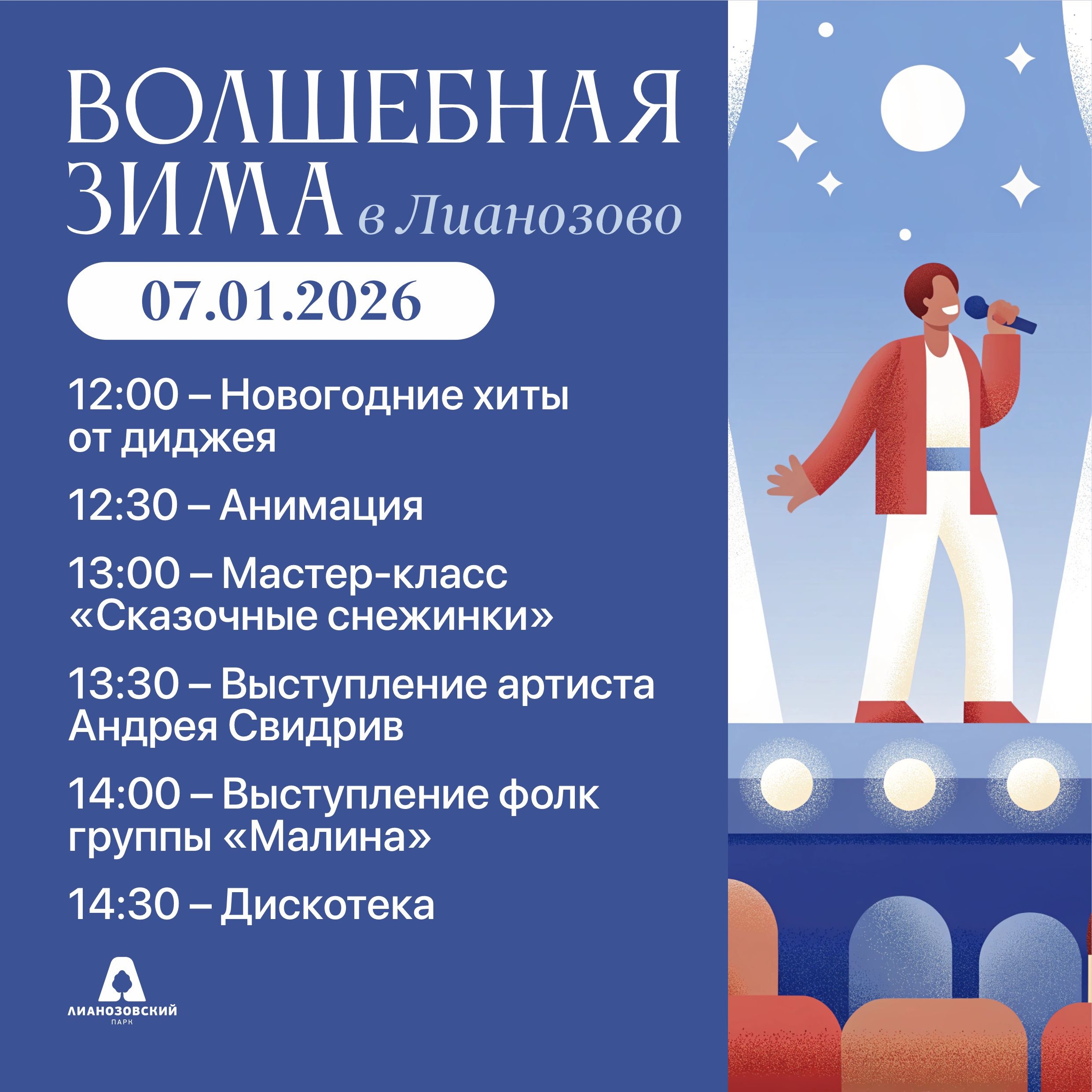 Приглашаем вас на праздничную программу 2, 3 и 7 января с 12:00 до 15:00.