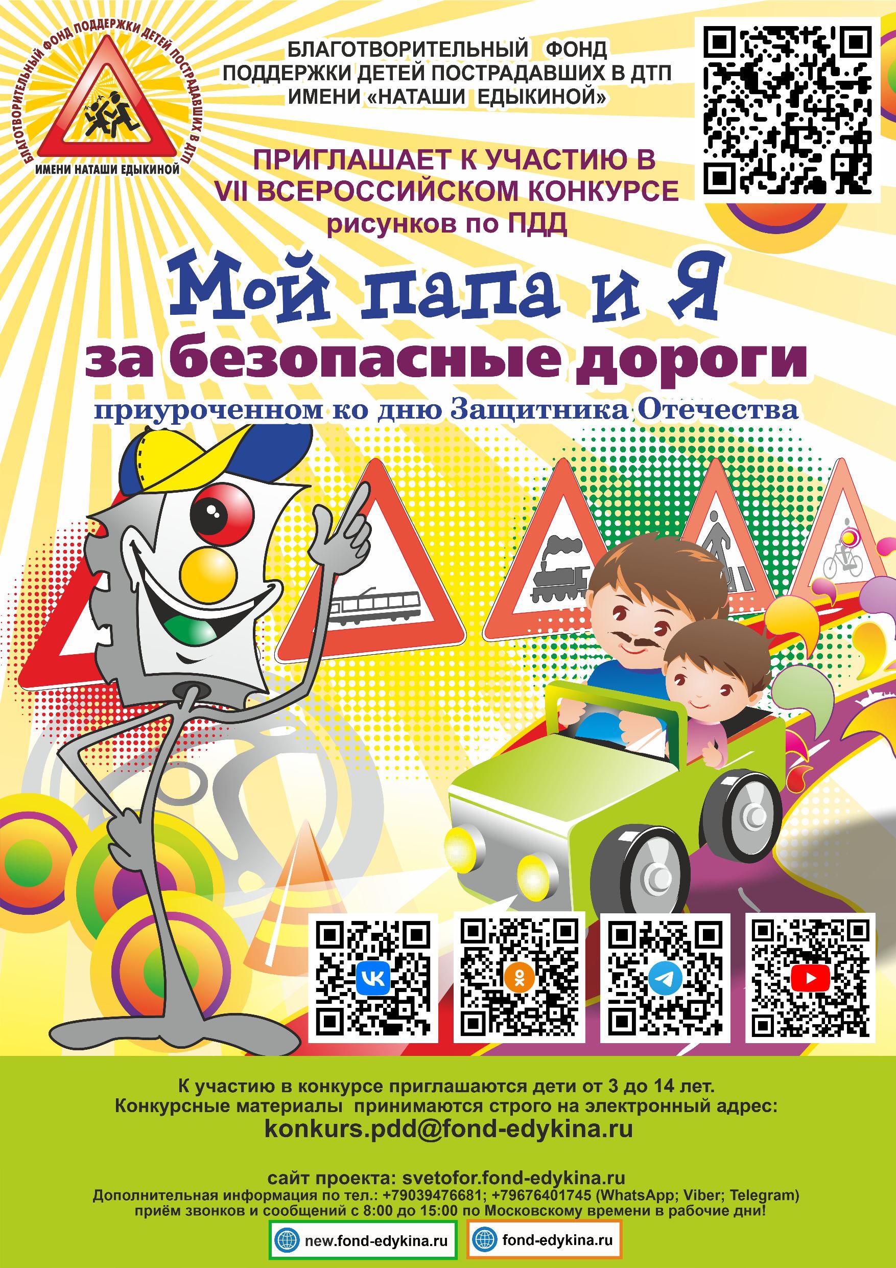 Благотворительный фонд имени Наташи Едыкиной при поддержке Госавтоинспекции РФ. Конкурс проходит в рамках проекта «Со светофоровой наукой по добрым дорогам детства».
